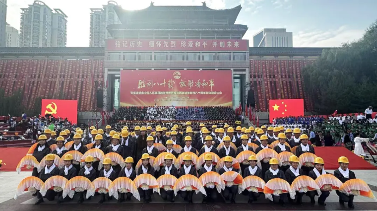 9月5日上午,勝利八十載 放歌頌和平——青海省紀念中國人民抗日戰爭暨世界反法西斯戰爭勝利八十周年群眾歌詠大會在新寧廣場隆重舉行。由省物產集團80名職工組成的合唱方陣代表全省企業參加演出活動。集團黨委書記、董事長劉玲,集團黨委專職副書記、工會主席魏廷強參加紀念大會。